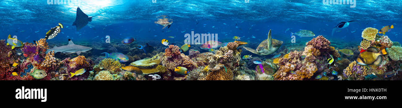 Underwater Sea Life Ocean Long Banner Background With Coral Reef