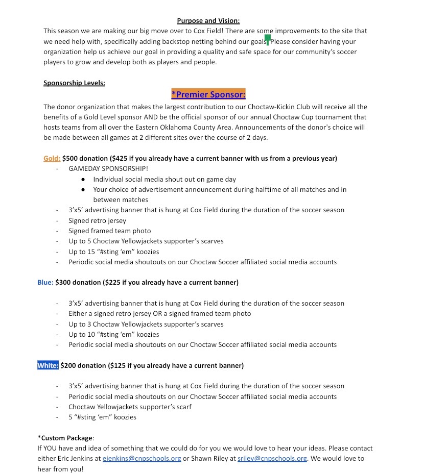 Choctaw Soccer 2020 Kick In Club Fundraiser Wefund4u
