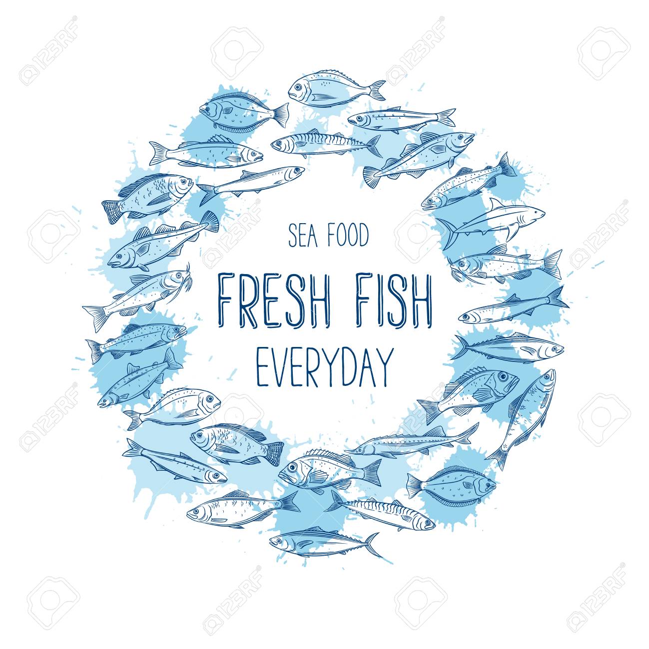 Vector Round Banner Hand Drawn Fish Design Seafood With Bream